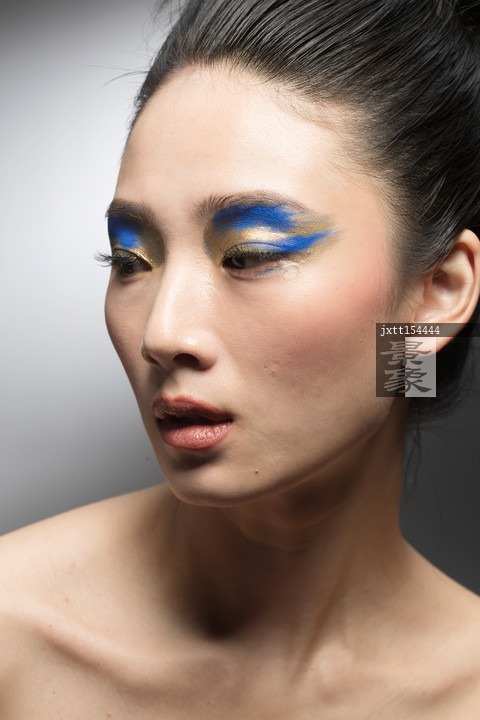 图片标题: 蓝金色系眼影美女