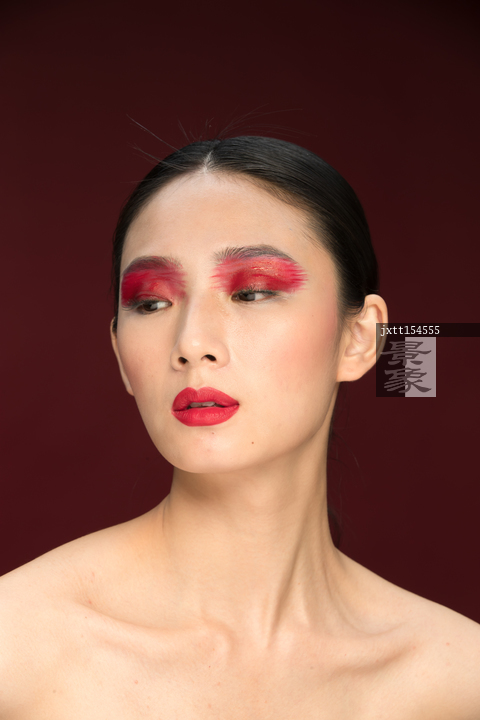 图片标题:     红色眼影彩妆美女