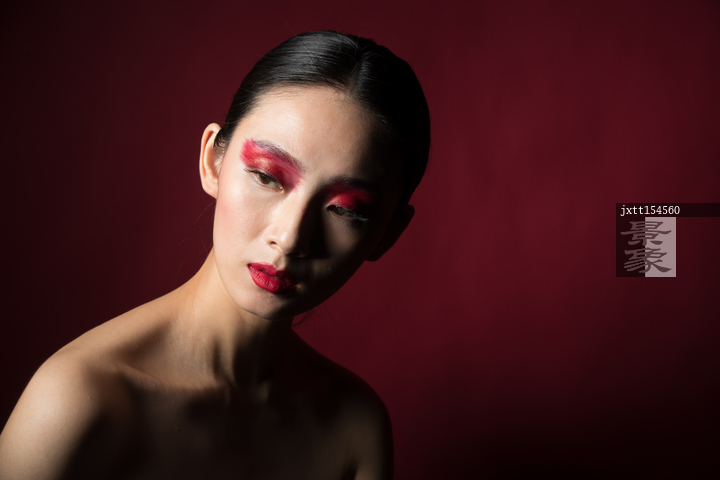 图片标题:     红色眼影彩妆美女