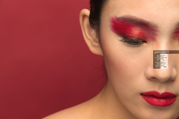 图片标题: 红色眼影彩妆美女