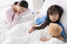 图片标题: 年轻妈妈陪伴生病的小女孩