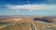 图片标题: 内蒙古额济纳旗:雨后京新高速公路,穿行在如画的戈壁大地上