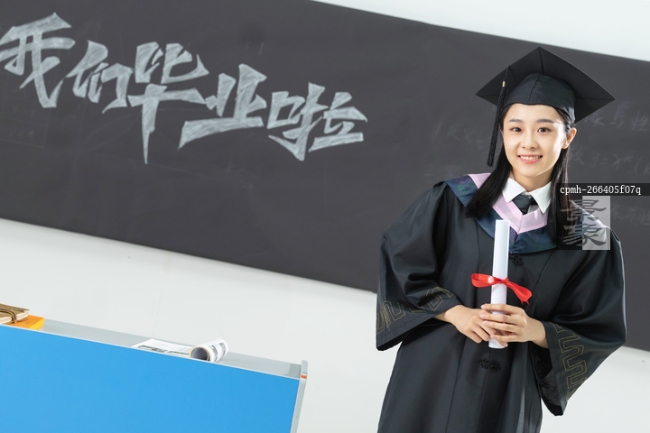 图片标题: 身穿学士服的毕业大学生