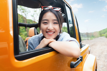 图片标题: 从汽车天窗探出身子兜风的年轻男女