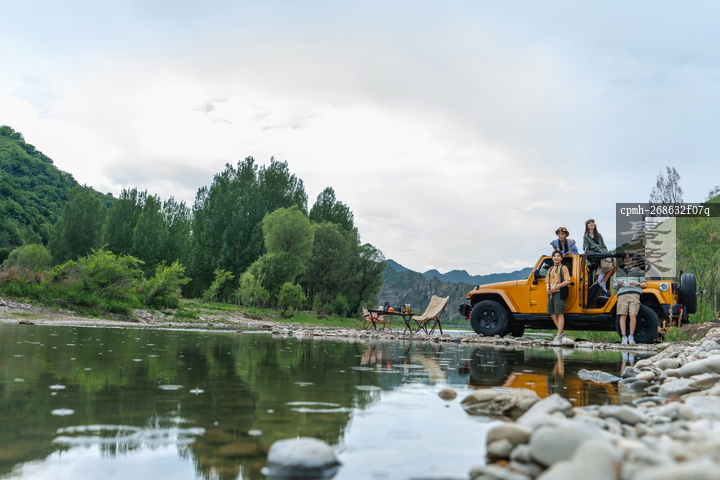 图片标题: 快乐的年轻朋友户外自驾游