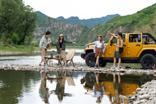 图片标题: 快乐的年轻女孩在河滩上露营