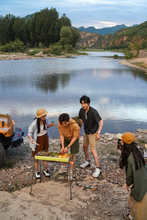 图片标题: 快乐的年轻朋友在户外烧烤露营
