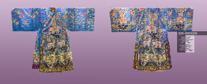 图片标题: 中国工艺美术馆-粉墨传奇-清代-蓝色平银绣太平有象云纹男蟒