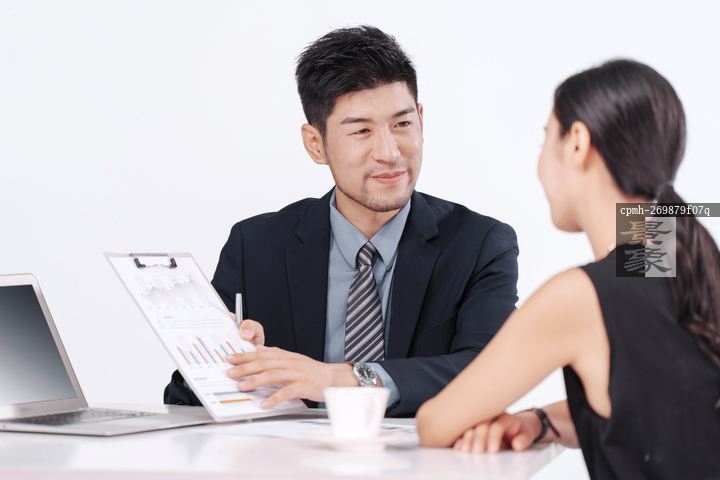 图片标题: 理财顾问和青年女士交谈