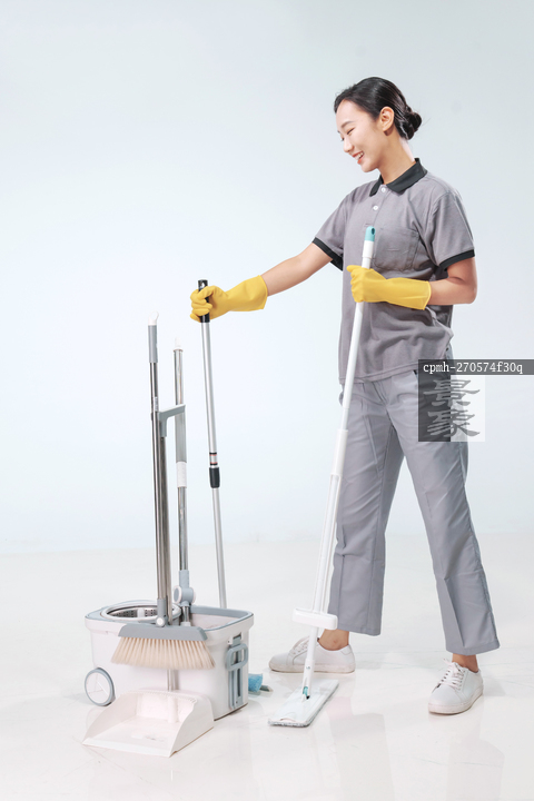 图片标题: 家政服务人员擦地
