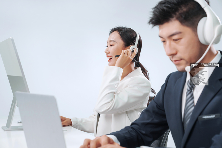图片标题:     带耳机工作的商务人士