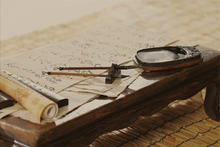 图片标题: 拿着毛笔写字的书法家