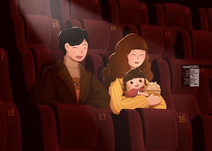 图片标题: 一家三口看电影插画