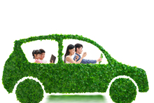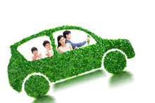 图片标题: 欢乐的一家人驾驶绿色环保汽车出行