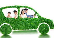 图片标题: 欢乐的一家人驾驶绿色环保汽车出行