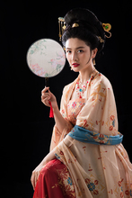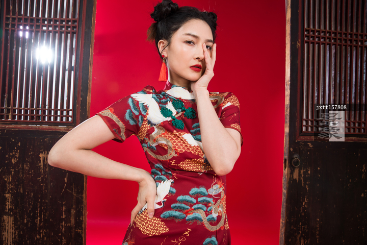 图片标题:     红色背景下的穿旗袍的青年女人