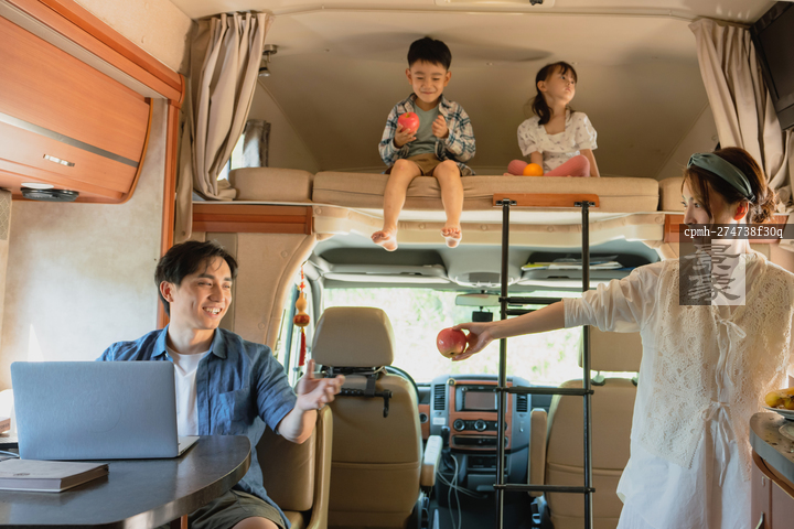 图片标题: 房车内的四口之家