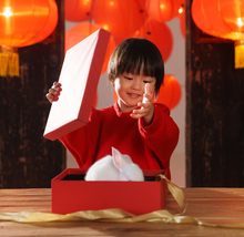 图片标题: 可爱的小男孩头顶新年礼物