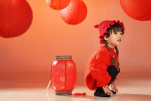 图片标题: 可爱的小男孩拿着糖葫芦庆新年