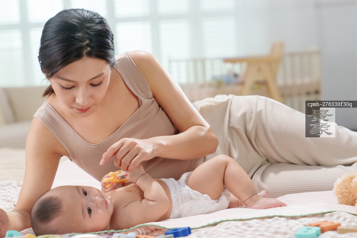 图片标题: 年轻妈妈陪伴宝宝玩耍