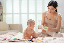 图片标题: 年轻妈妈陪伴宝宝玩耍