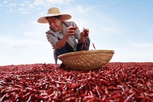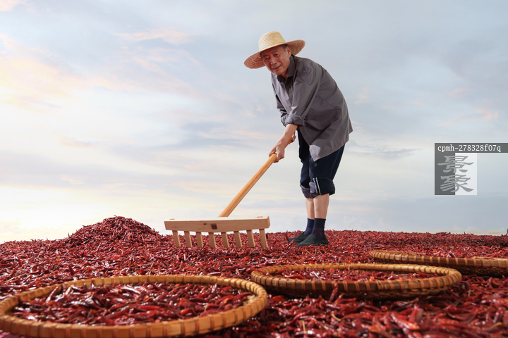 图片标题: 农民晾晒辣椒