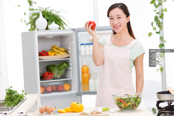图片标题: 年轻女人在厨房做饭