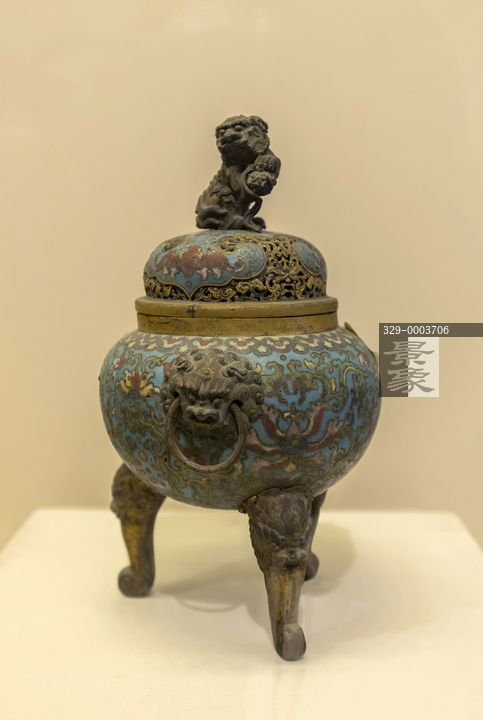 图片标题:     国博积厚流广考古成果展-景泰蓝宝相花兽面三足炉-清代