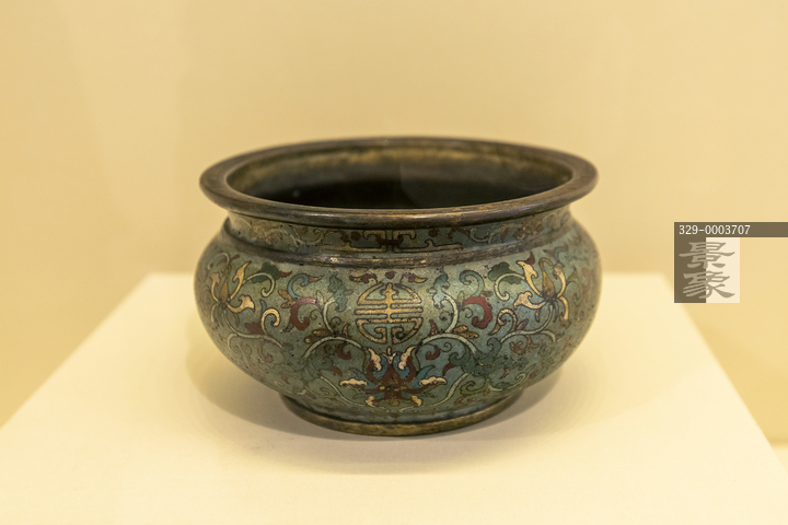 图片标题: 国博积厚流广考古成果展-铜景泰蓝缠枝花香炉-明代
