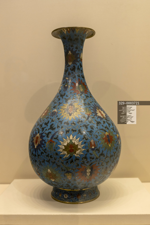 图片标题: 国博积厚流广考古成果展-铜胎掐丝珐琅缠枝莲玉壶春瓶-清代