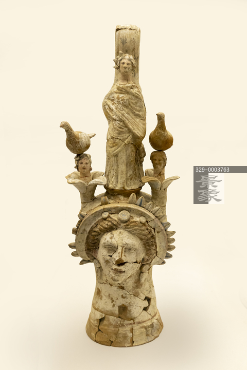 图片标题: 国博意大利之源-古罗马文明展-双勇士之墓随葬品-随葬品-立体装饰彩绘水罐陶