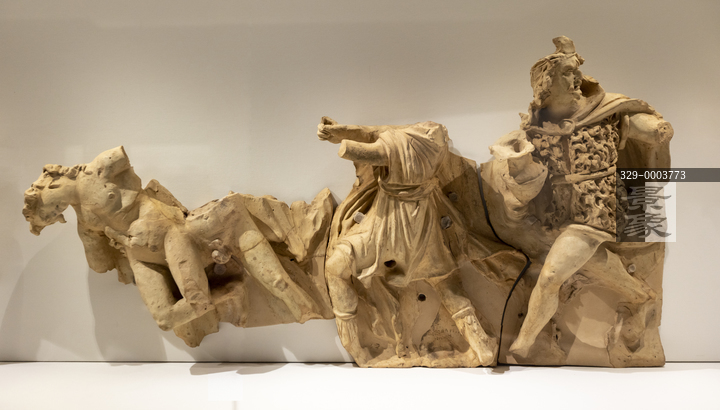 图片标题: 国博意大利之源-古罗马文明展-意大利,赤土陶-迦拉太人(凯尔特人)和希腊诸神战斗场景雕饰残件