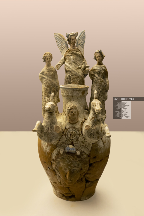 图片标题: 国博意大利之源-古罗马文明展-双勇士之墓随葬品-立体装饰彩绘水壶陶