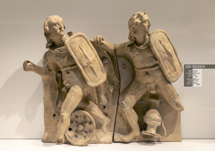 图片标题: 国博意大利之源-古罗马文明展-赤土陶-迦拉太人(凯尔特人)和希腊诸神战斗场景雕饰残件-公元前2世纪