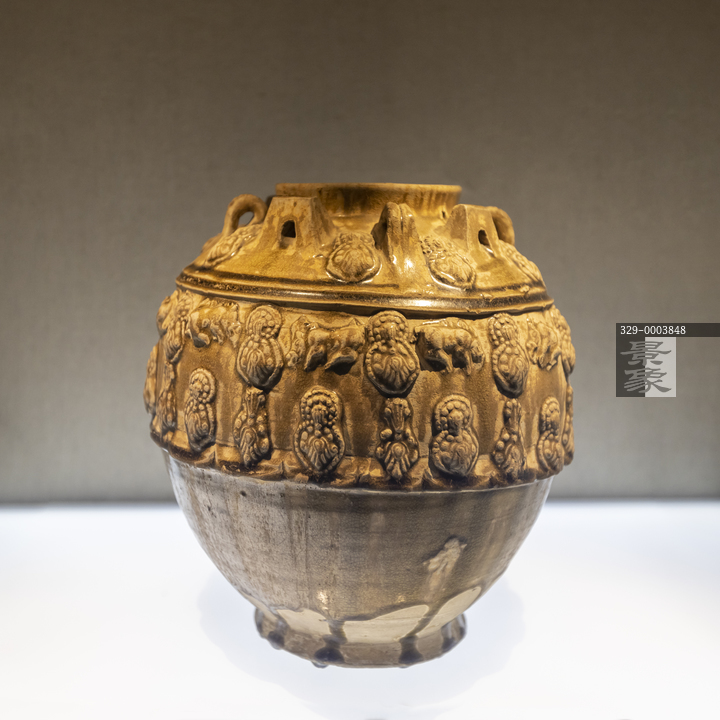 图片标题: 国博中国古代瓷器艺术展-青釉贴花四系罐-隋