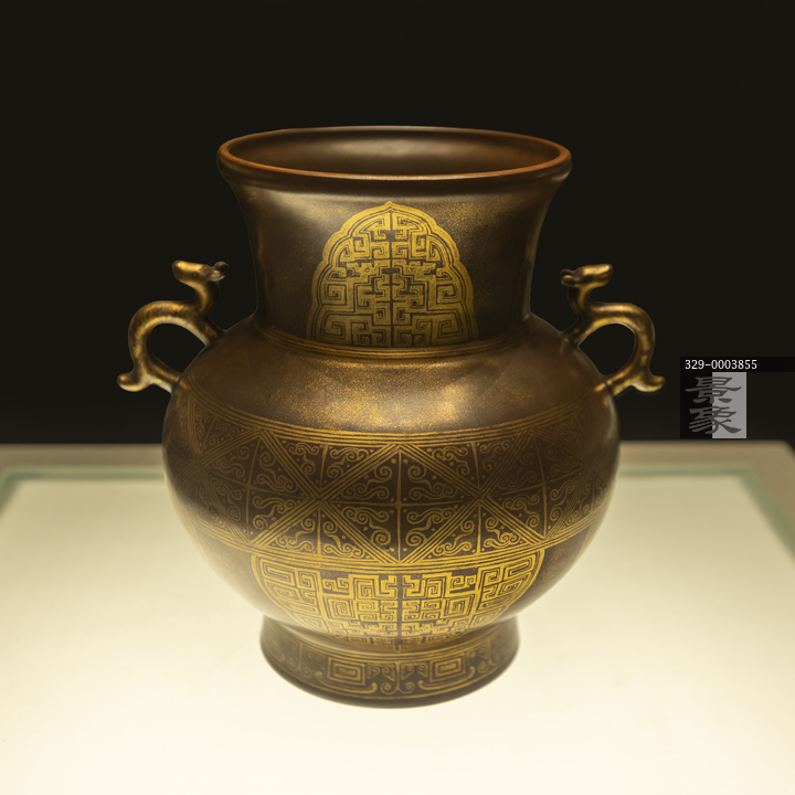 图片标题: 国博中国古代瓷器艺术展-仿古铜釉描金牺耳尊-清乾隆
