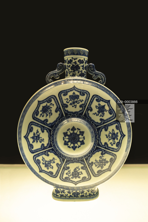 图片标题: 国博中国古代瓷器艺术展-青花八吉祥纹扁壶-清乾隆