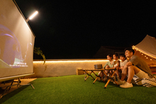 图片标题: 青年朋友在游泳池旁的躺椅上