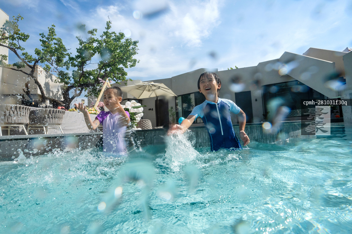 图片标题: 在泳池里玩耍的快乐儿童