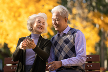 图片标题: 护士推着坐在轮椅上的老人散步