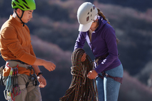图片标题: 青年登山者伴侣站在山顶俯瞰