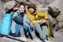 图片标题: 青年女性登山者准备攀岩装备