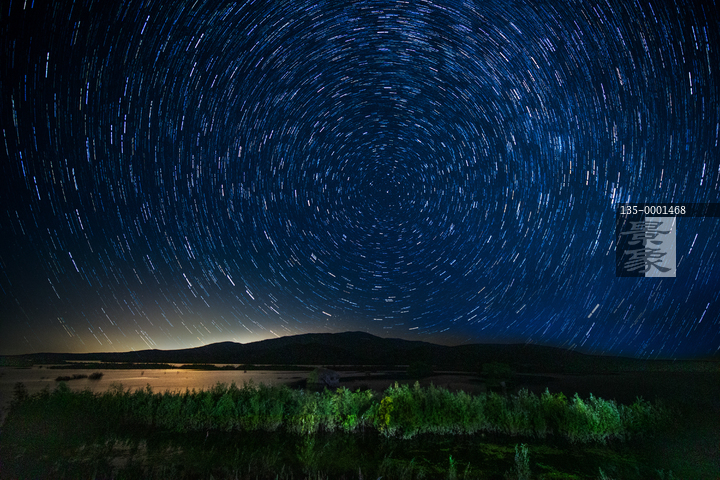 图片标题: 三江湿地夜晚星空星轨