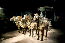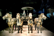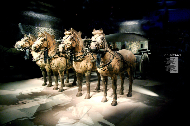 图片标题: 西安秦兵马俑博物馆神马馆里展示的秦马俑
