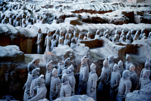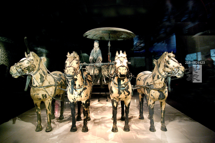 图片标题:     西安秦兵马俑博物馆神马馆里展示的秦马俑