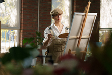 图片标题: 在工作室里讨论工作的青年女摄影师