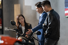 图片标题: 汽车销售人员为三口之家介绍
