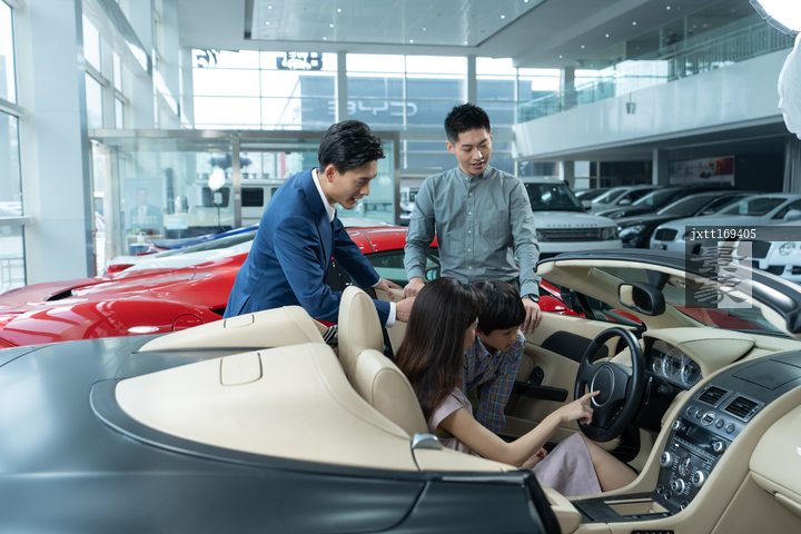 图片标题: 汽车销售人员为三口之家介绍