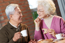 图片标题: 老年夫妇使用笔记本电脑