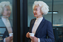 图片标题: 老年夫妇边喝咖啡边交谈